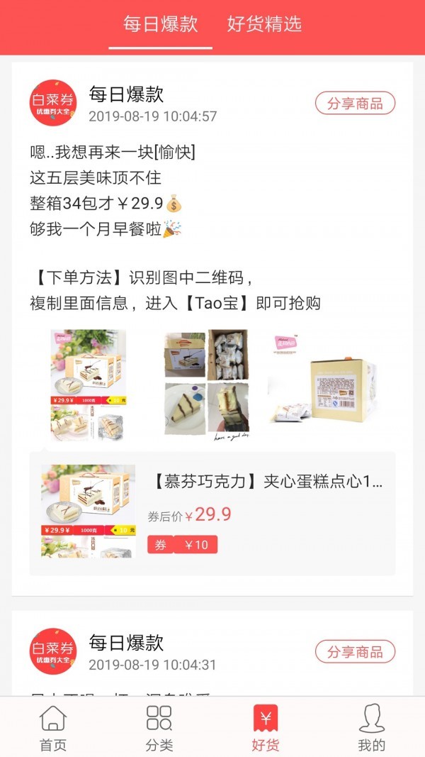 3、先上今日白菜券:每天10点上新上万优惠券,将优惠进行到底。