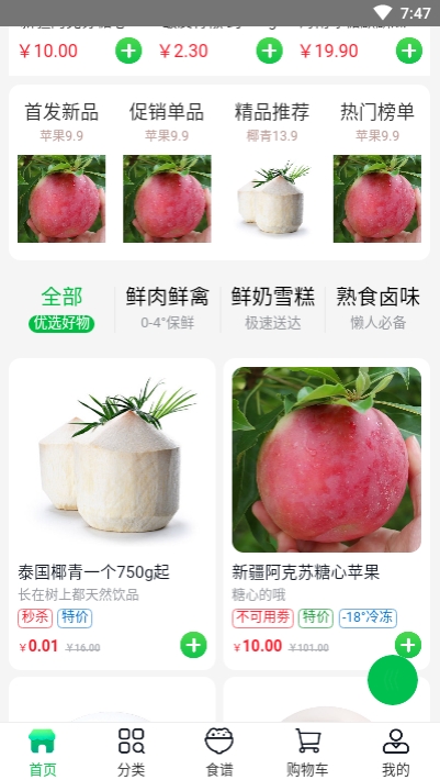 1、有海量类型的商品,水果蔬菜、豆类制品等,这里的生鲜食材性价比超级高,价格也是十分的实惠;