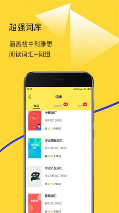 4、超强词库:涵盖初中到雅思,阅读词汇+词组