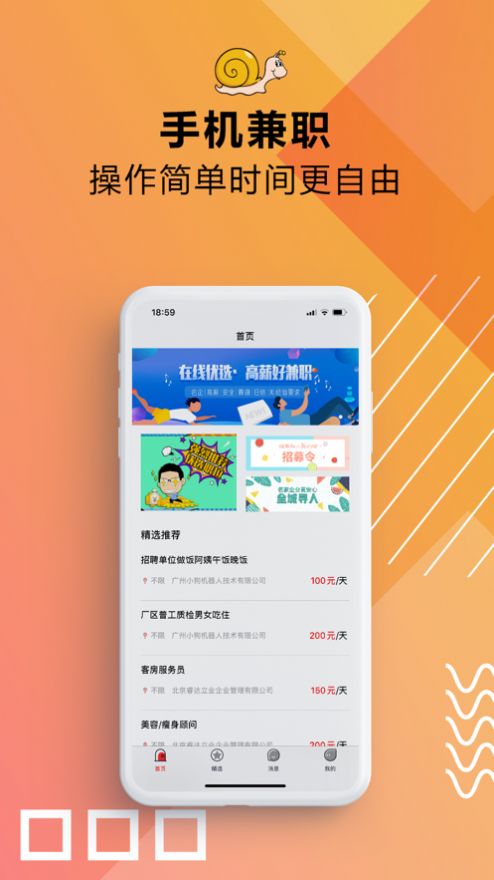 还在为找不到好工作优质兼职而忧愁吗?快来试试这款蜗牛直聘APP吧,这款蜗牛直聘APP绝对是你兼职找工作的赚钱神器。平台上拥有大量的兼职工作,这些工作全部都是经过专人审核的,信息真实可靠。轻松帮你找到好工作,需要的朋友欢迎前来下载!蜗牛直聘app官网版是一款针对空闲时间多的用户打造便捷接单服务平台,系统为用户打造了很实用的线上接单网赚平台,为用户提供了一站式的兼职服务!在这里可以为你提供更加经典的网赚类的任务,为用户推荐的所有任务都是非常经典的,基本上可以满足用户在线接单网赚的需求!