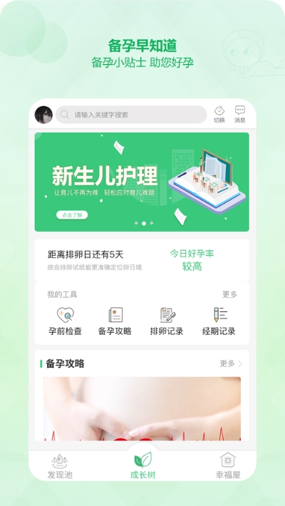 【备孕早知道】通过孕前检查提醒、排卵及经期记录,加上优质备孕攻略,提高您的怀孕几率。