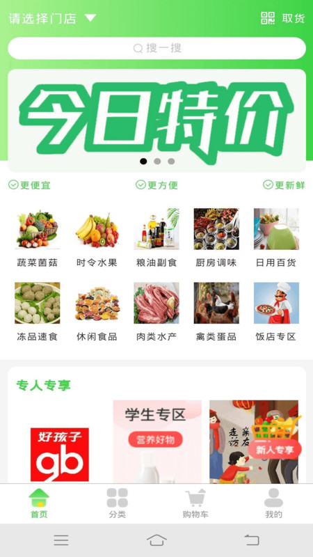 1、在首页界面上可以看到今日的特价商品,可以直接抢购,数量都是有限的,抢到就是赚到;