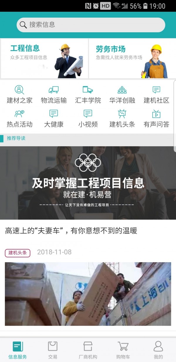 4.点击信息服务,能够进行各种工程信息、劳务市场等服务