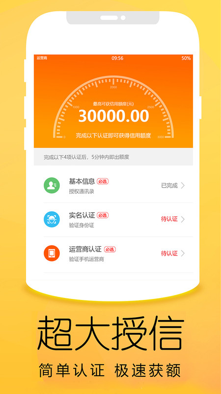 2.超大授信,只需要通过简单的认证,就能够快速获取额度;