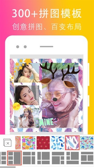 - 300+拼图模板、实用滤镜、纹理、美图贴纸