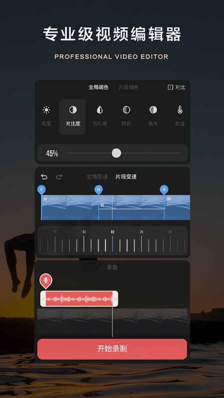 2.容易上手的剪辑工具,让小白秒变大神,将一个普通的视频快速剪辑成拥有大片感觉的影片;