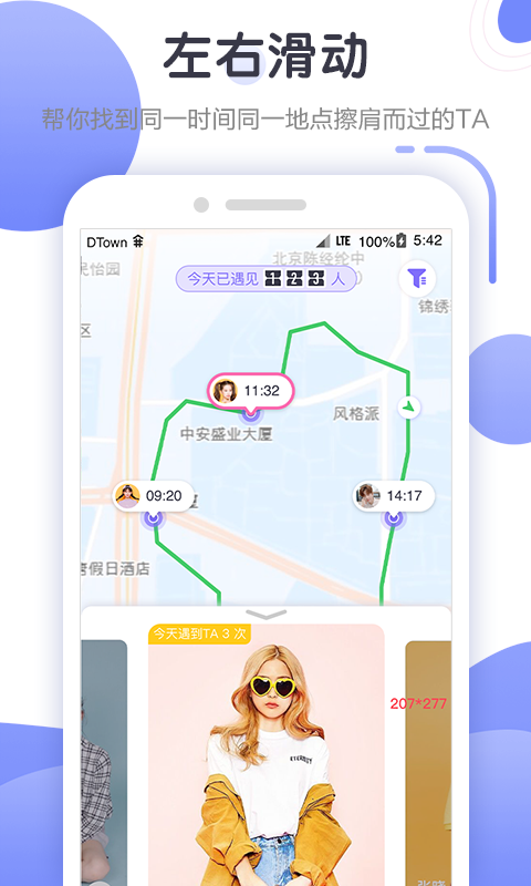 【首页左右滑动】帮你找到同一时间同一地点擦肩而过的TA;