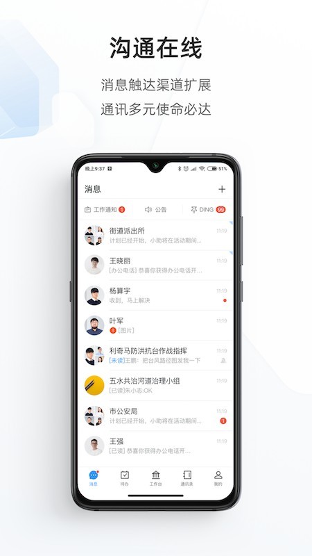 政务钉钉是一款非常好用的办公的应用软件,这款软件十分的方便,用户可以通过软件快速的联系到自己的同事,也可以在上面进行办公文件的传输,可以在线快速的下载,提高自己的办公效率,政务钉钉平台能够让每位员工之间实现即时沟通模式,通过政务钉钉软件在外地也能通过视频会议参与工作!政务钉钉,是以提升政务协同办公效率,助力政务数字化转型为目标,借力阿里巴巴的技术和业务沉淀,降低政务办公沟通和管理成本,实现开放、安全、智慧、高效的数字化政务协同工作平台,喜欢的可以来下载哦。