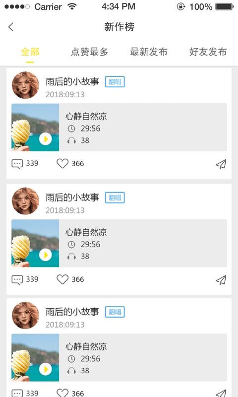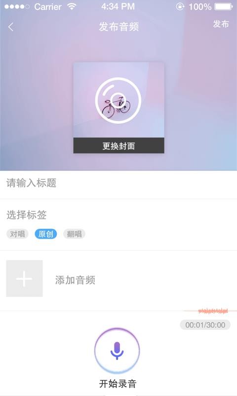 3、这里支持以录音的方式发布语音动态,如果用户想要一展歌喉的话也可以;