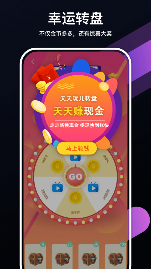 走走赚是一款为用户朋友们打造的赚钱app,非常适合喜欢运动的用户朋友们,用户完成自己的运动目标还能够通过它获得奖金,还能够直接体现,软件拥有丰富的赚钱模式,不仅日常走路可以获得奖励,并且走走赚app上进行推广也能赚钱,轻松实现零投资赚零花钱,喜欢就来下载试一试吧!
