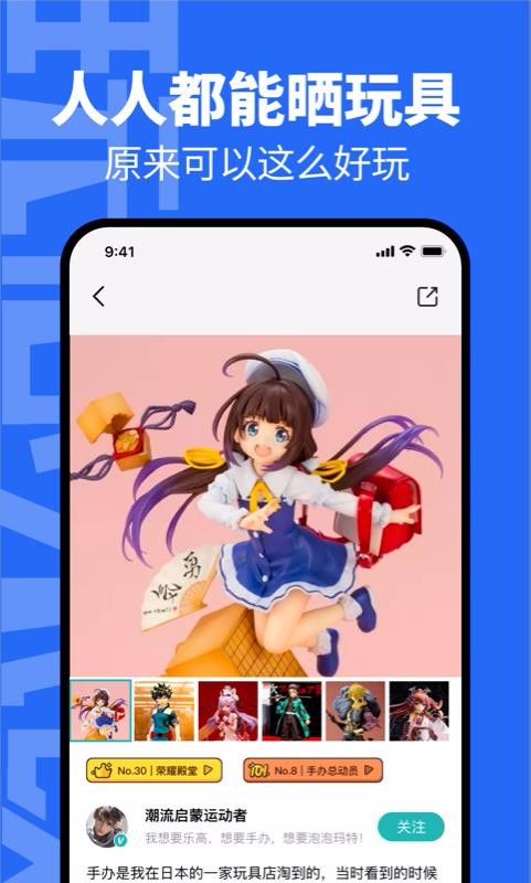 2、资源丰富,精选的手办商品浏览,关注你感兴趣的人,总有适合你的玩具;