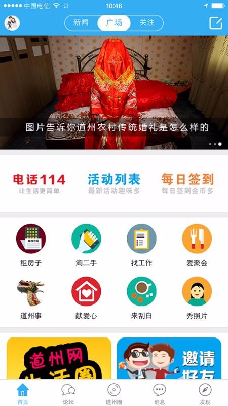 道州网app是专门为本地用户打造的一款新闻资讯工具,并包含本地资讯、线上爆料、求职招聘、房屋租赁等方面的道州本地生活服务,致力于发展成为本地最活跃的社区,打造线上交流平台;非常多有趣的同城社交活动可以参加,有着秀照片、线下聚会等趣味活动,感受一种不一样的本地社交体验;还有专业的论坛社交服务,有着丰富的讨论话题,直接查找你喜欢的论坛话题,能够以发布帖子内容的形式加入讨论,分享你的观点看法,与同城本地网友线上交流,结识本地优秀的人,打造个性化的朋友圈,感兴趣就下载道州网使用吧。