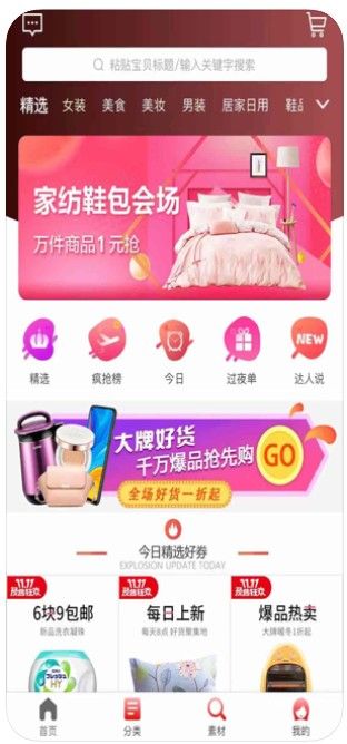 2、首页为你精选推荐好货物资,9.9元包邮更受欢迎,每日上新,热门爆款等;