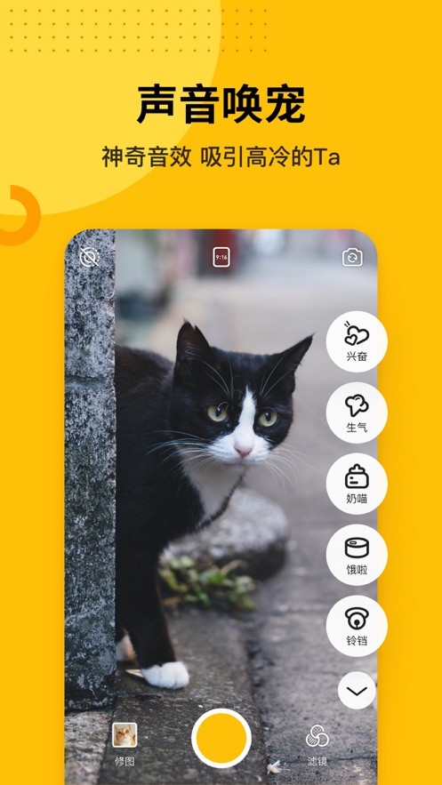 3、想要拍照,但是家中的猫狗却不配合,怎么办没有关系,只要打开专门的声音特效,马上就可以把它们呼唤过来。