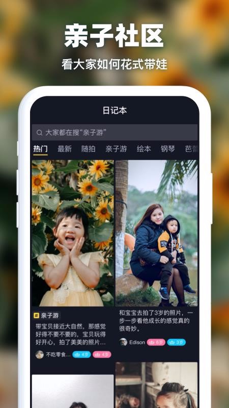 1、亲子游:海量亲子游活动推荐,点击参与活动与自己的孩子互动;