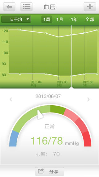 4、血糖、血压功能,记录并且展示血糖、血压的水平趋势;