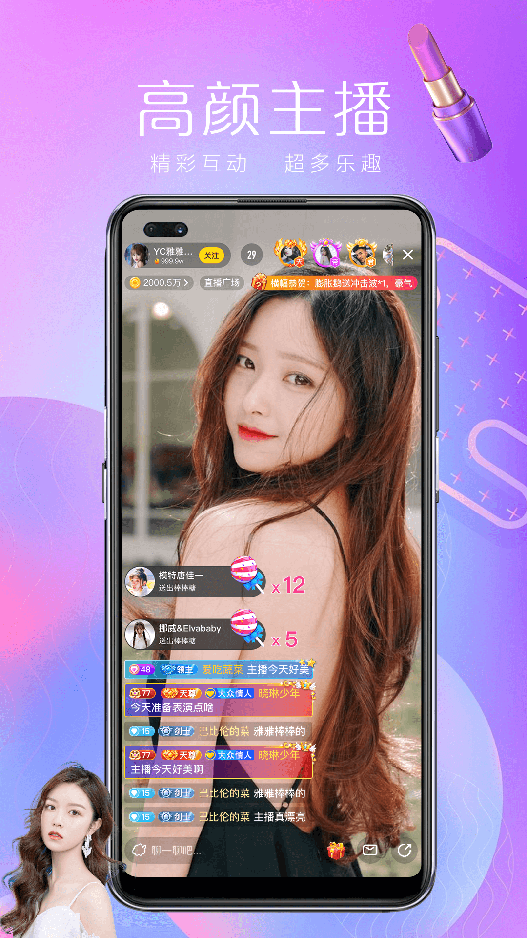 2、看精彩直播互动,与心仪女神面对面,体验全新的直播社交玩法;