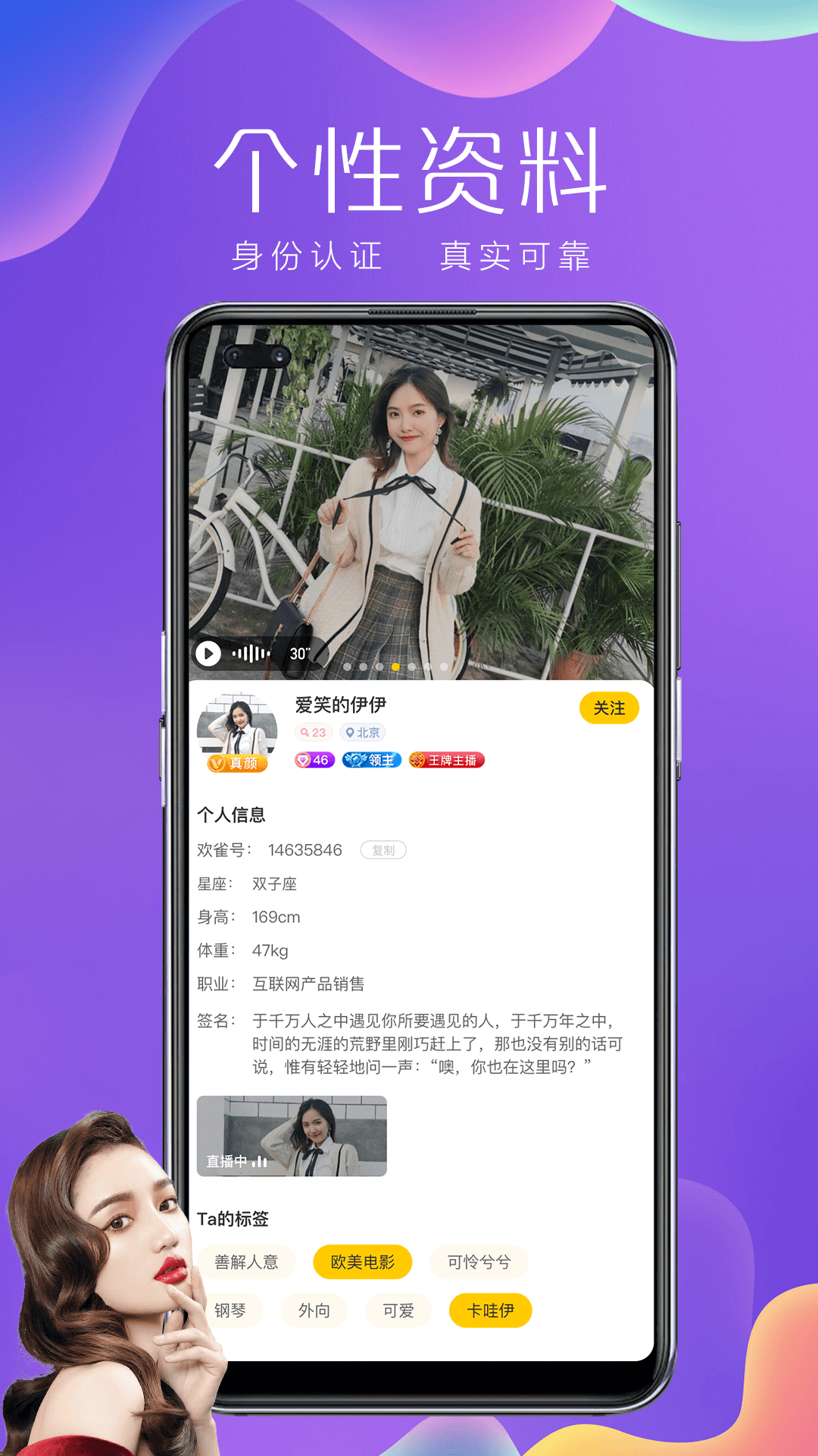 1、个性资料一网打尽,年龄、身高、体重、签名、相册、视频都有;