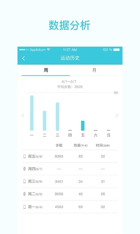 4、计步:全天候记录运动数据,同时支持多款计步设备。