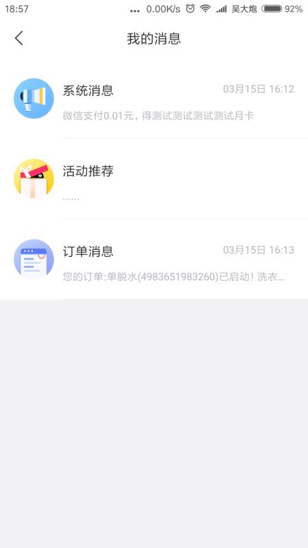 4、应用会在线通知客户订单情况,通知客户可以洗衣服;