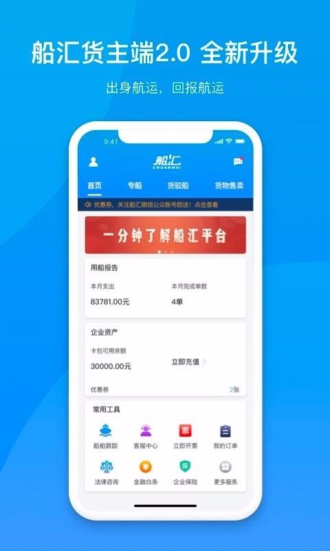 用户通过平台一键下单发布货物、船源的信息,不仅数据自己掌控,同时通过智能配对、消息通知、线上接单、结账、评论、分享等船主与的货主互动功能,满足大中小企业的水路整船运输需求。同时可提高船主配货效率,降低空返率,提升物流企业找船效率,改善整体物流行业的配货效率。从而使整条航运生态链资源整合一齐,变得省时、省钱、省心!通过app即可一键下单发布货物信息,自己的所有运输数据都能随时掌控,让你可以与船主进行联系,知晓货物运输情况,需要的用户就来下载船汇货主使用吧。