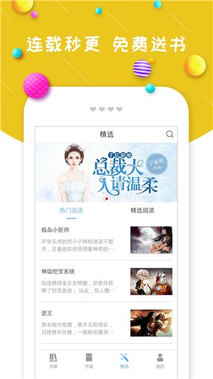 1、一款打破传统书架式的移动阅读应用,用清爽的UI界面第一时间展示最新鲜最热门的小说作品。