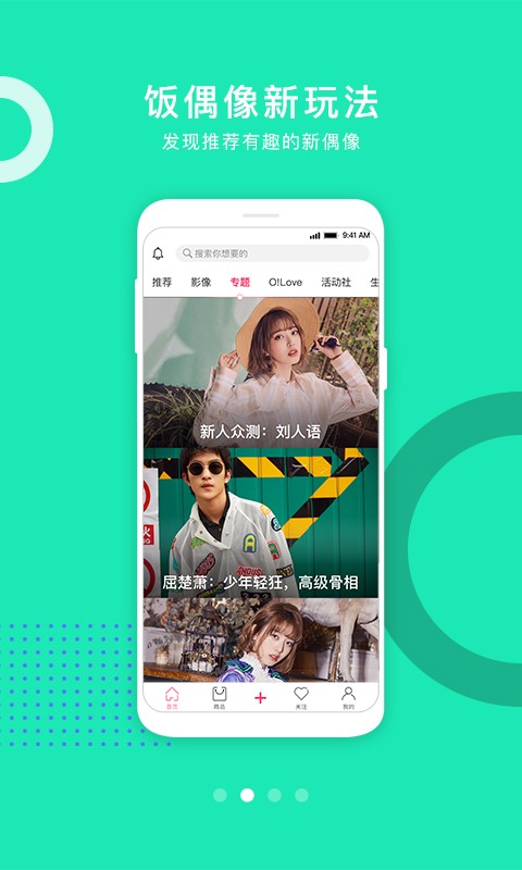 1、社区服务,可以与自家的粉丝爱豆们进行互动交流,时尚潮流发现之地。