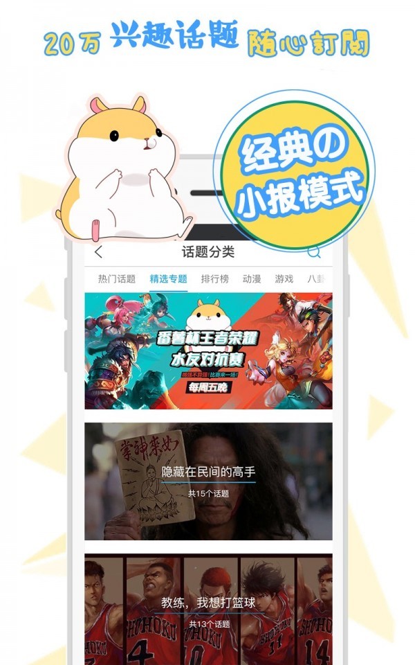 番薯小报app是一个多功能、多元化的内容平台,为大家呈现了非常多样化的有趣动态,需要记得的事情太多,而可支配的时间少之又少。你是否总是错过番剧的更新、爱豆的动态、流行的梗、好吃的餐馆、优惠的打折信息、新上映的电影、游戏大作的发布...感觉自己差不多是个假人了!在这里你可以通过app了解到各方各面的新鲜资讯。番薯小报app的覆盖范围十分广,动漫、美图、游戏、八卦、电影、综艺等领域全部包含,无论你想看什么样的内容这里都有,给你的生活带来了源源不断的快乐。
