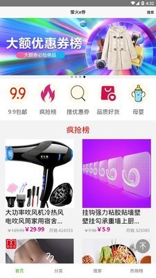3.提供便捷搜索功能,不管是找商品还是优惠券都能在几秒之内找到;