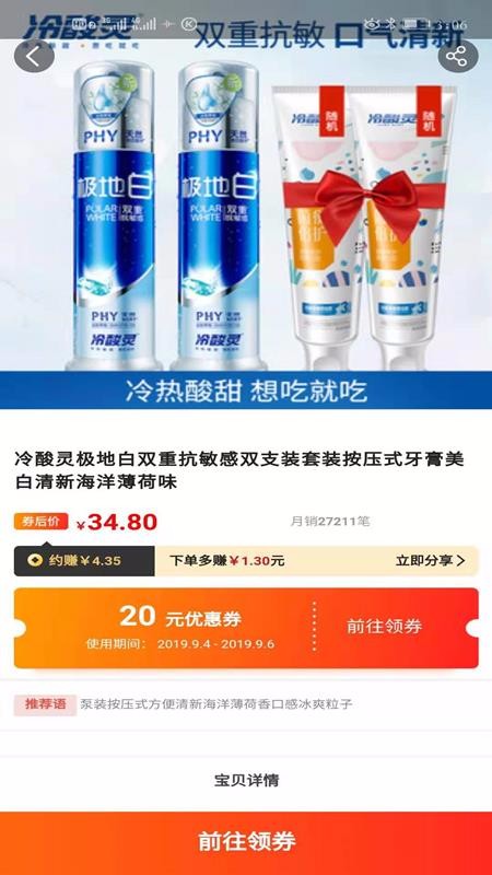 3:内嵌手机淘*板块,一键免*领取优惠券并跳转至手机淘*对应商品领券下单。需先登录手机淘*账号,下单时自动使用内部优惠券。