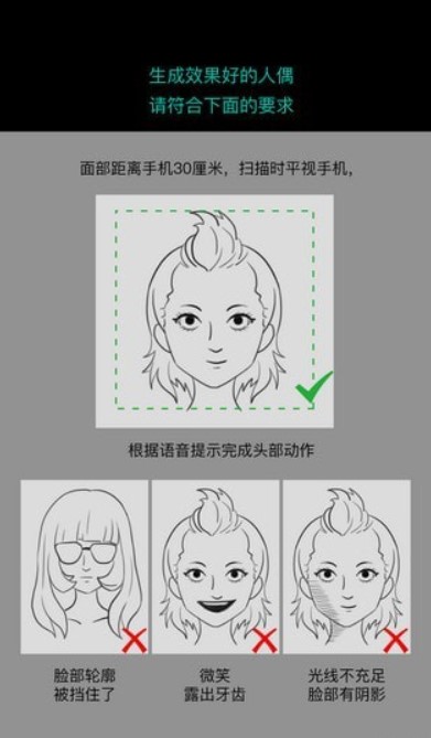 4、软件会根据用户的脸型进行拍摄,制作自己的专属形象。