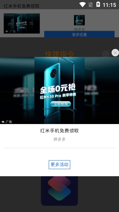 8、点击快捷指令,搜索刚才添加的提示音快捷指令;