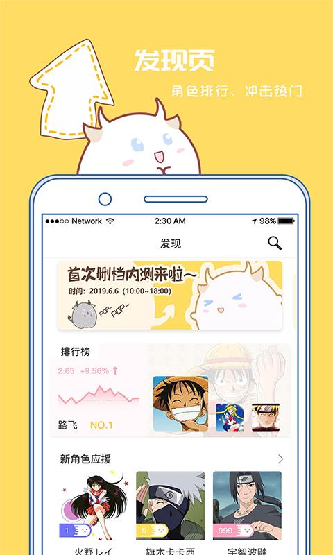 爆谷APP是一款二次元风格的社交平台,在这里用户可以结交超多二次元的好友,能够在这里尽情的交流,交谈自己感兴趣的话题以及内容,还能够共同为自己喜欢的二次元角色打榜,不仅能够扩大自己的交友圈,还能够锻炼自己的口才,是二次元交友必备的软件。专为喜欢二次元世界的用户打造的手机软件,不仅可以了解最新的动漫资讯,还能够结交更多喜欢动漫的好友,你们可以尽情交谈你们感兴趣的话题,还能够为自己喜欢的角色疯狂的打CALL。