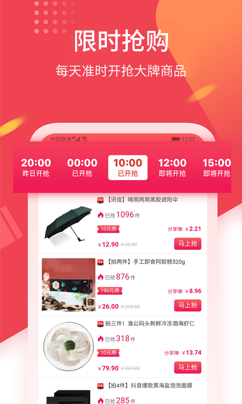 5.限时抢购:精选大额优惠券商品、时时播报、好货绝不放过;