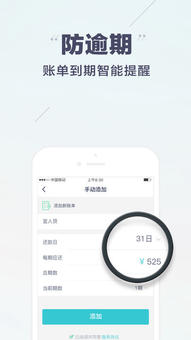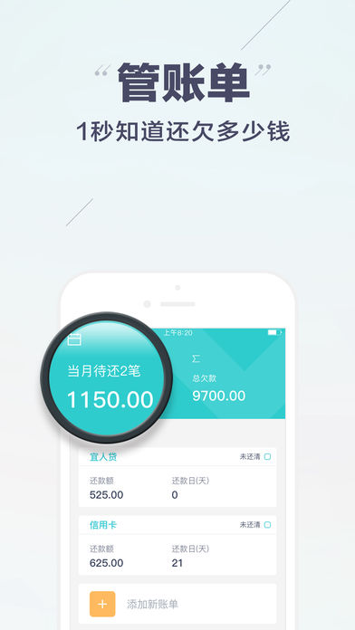 1、管理账单:看看自己借多少钱;还款提醒防止逾期;