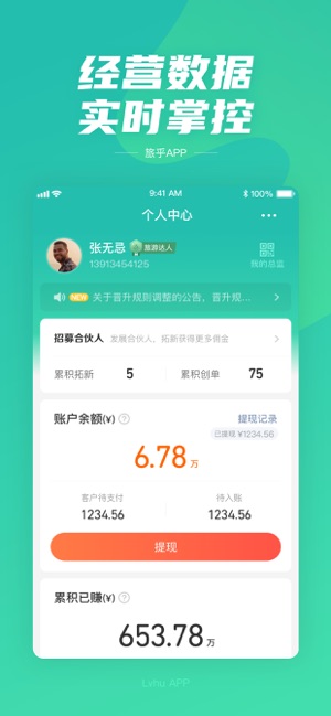 3、个人中心-全面的个人经营信息,实时掌控经营状况。