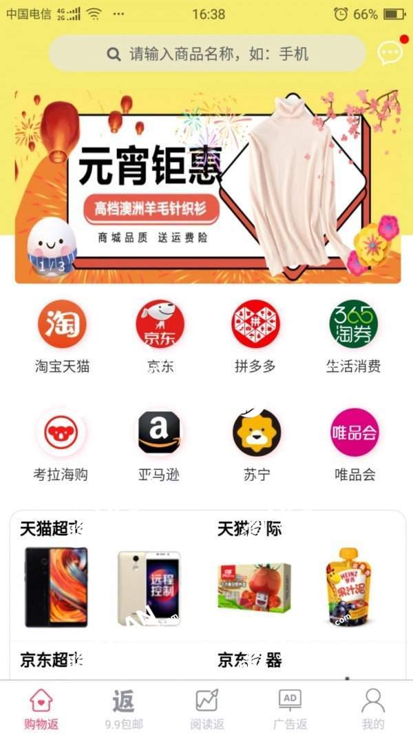 6、商城返利:支持全网400多家电商平台,超值省钱只为您!