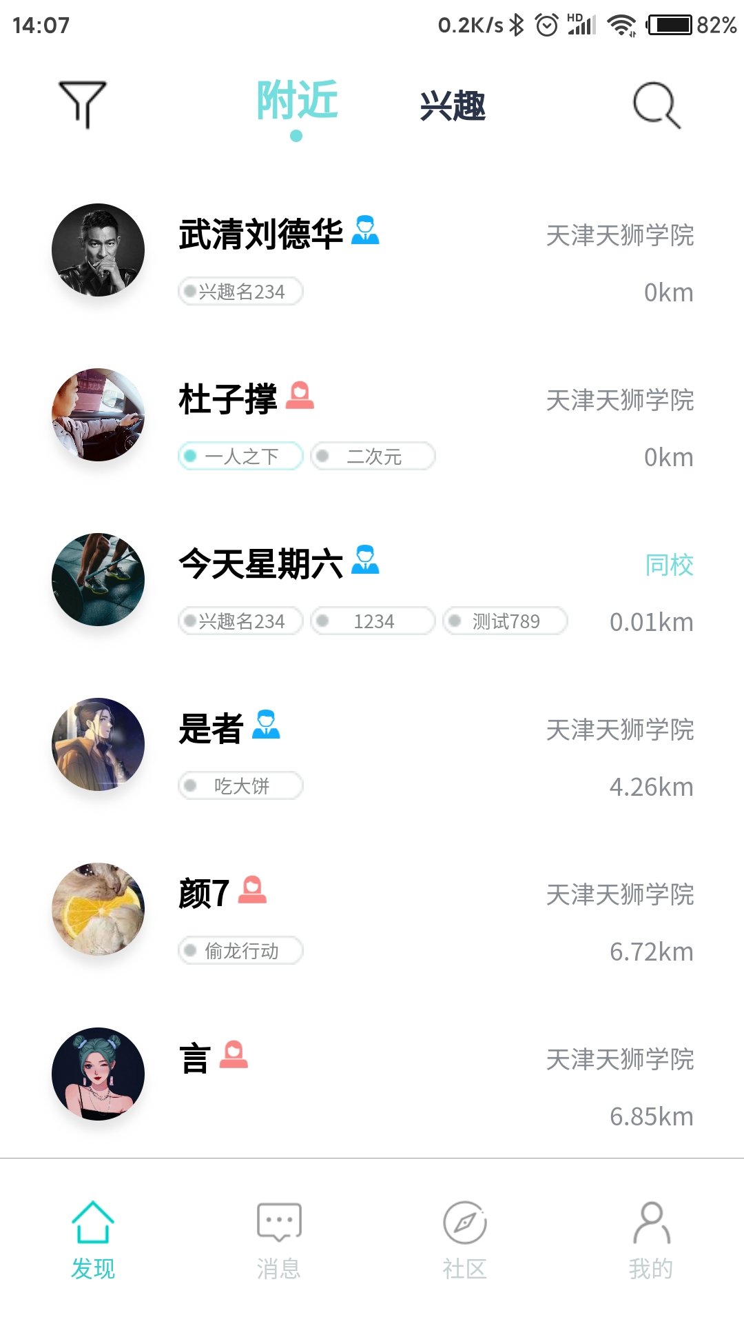 1.附近人功能默认为附近人,附近人根据距离进行排序,点击附近人可跳转该用户个人首页;