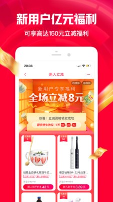 1、新人注册一起折扣app可享受0元购的商品超值优惠。