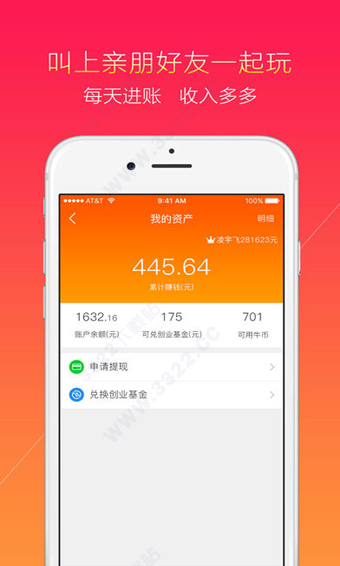 创业赚钱是一款可以帮助你快速挣钱的软件,支持在线聊天,创建群组、群聊。帮助快速组构团队,轻松快捷赚钱,挖掘自己的潜力,实现零投资零风险,积累财富,开创事业。欢迎下载创业赚钱app!