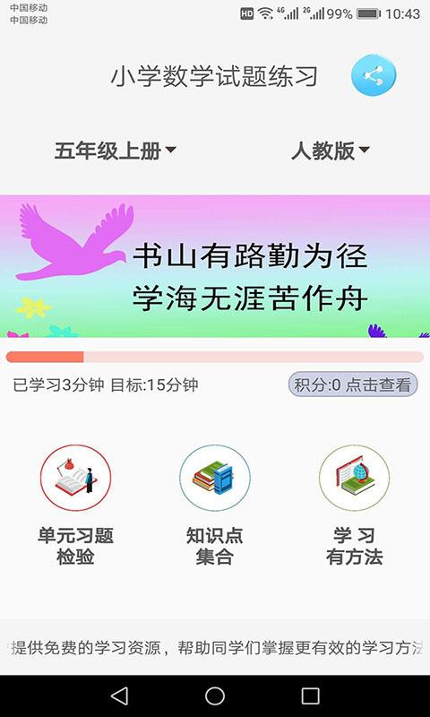 小学数学试题练习app是一款为小学学生提供的高效、轻松、风格简洁的题目练习软件,为学生准备大量全面的同步教育题目,通过使用高效的题目练习方法,让学生可以在线进行快捷的题目练习,帮助学生快速掌握对应的题目做题技巧;使用了应用提供的高效练题方法,让学生快速练习对应的题目,并为学生提供对应的系统性练习,让学生可以进行系统性学习、复习;应用拥有相同教材知识的题目,让学生可以找到同步的题目练习资源,让学生轻松进行同步学习,增加自己的学习时间,进一步提高自己。快来下载试试吧!