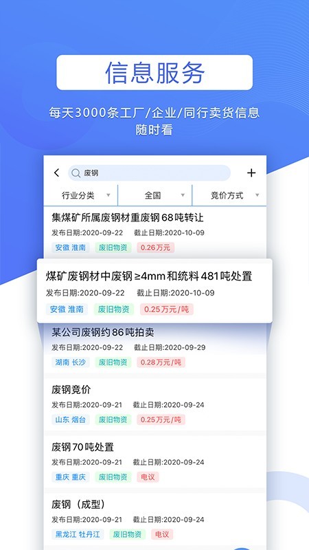 旨在赋能再生资源产业,改变营销、推广及经营方式,为回收企业提供全面及时的物资回收信息。