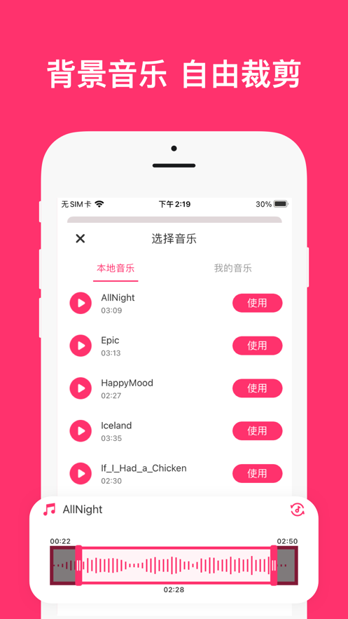 - 视频快速剪辑、加速、上滤镜