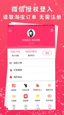 【方便】微信授权登入,可读取淘宝订单,无需单独注册,同步淘宝天猫海量商品。