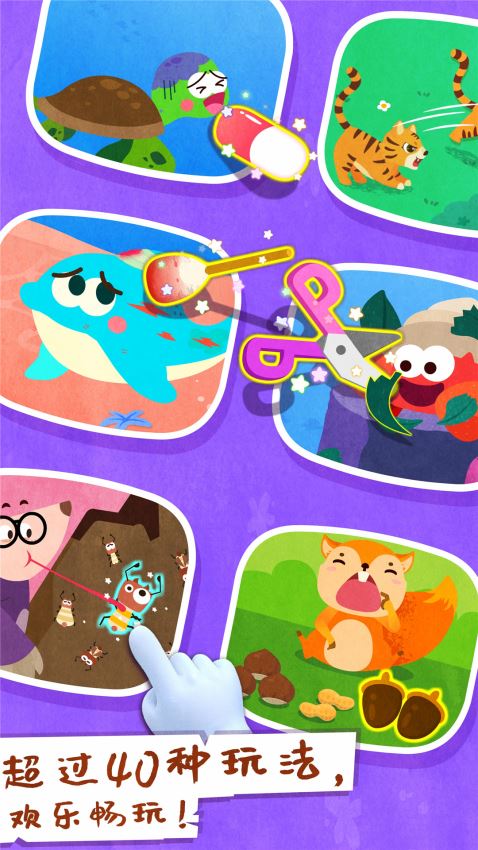 1、20多种动物,涵盖了各种飞禽走兽;40多种玩法,给予孩子丰富游戏体验;