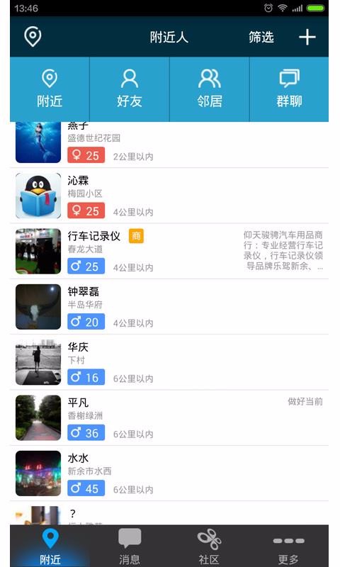 3、开启手机定位,附近的人一目了然,并且基于你的地理位置,搜索离你最近的人;