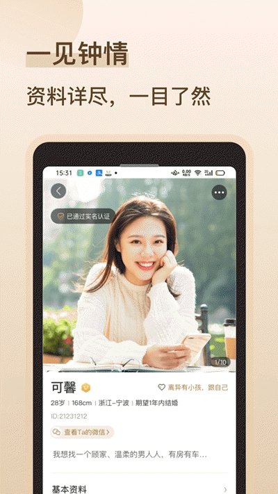 1、实名认证:实名身份认证,非诚勿扰。真人真照片真资料,严肃征婚恋爱交友找真爱!