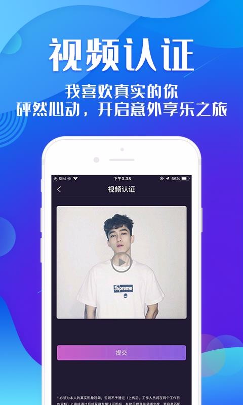 在线认证用户的真是身份,通过视频认证,有效保证用户的身份真实性,放心的社交;