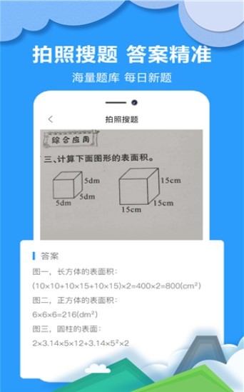 1.只需要使用手机拍摄题目内容,就会快速的获得答案;