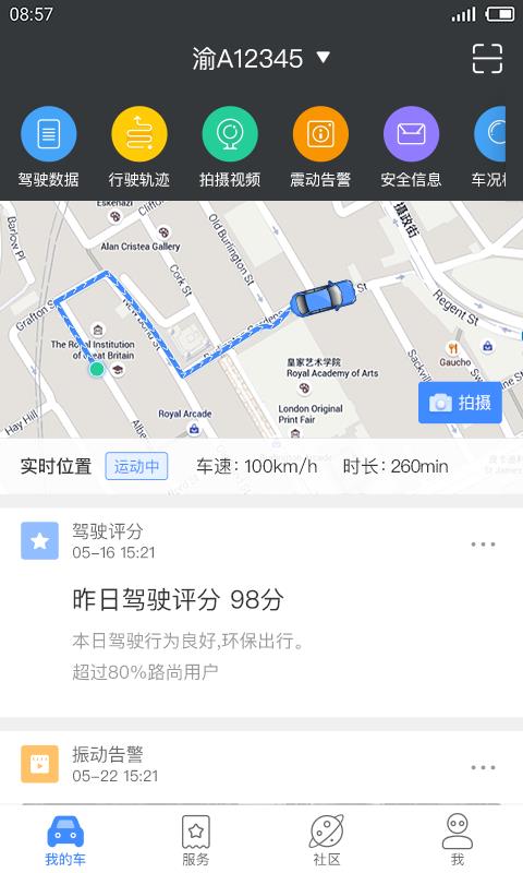 1、行驶轨迹预览功能,软件能够在线为用户记录实时出行轨迹;